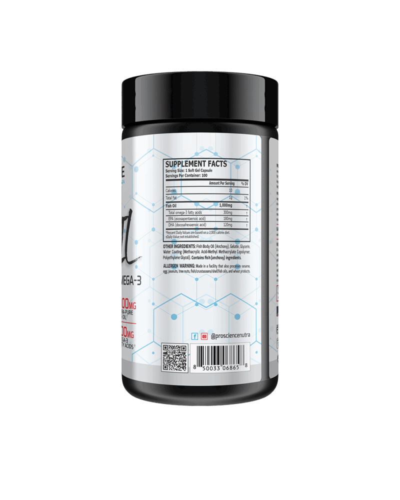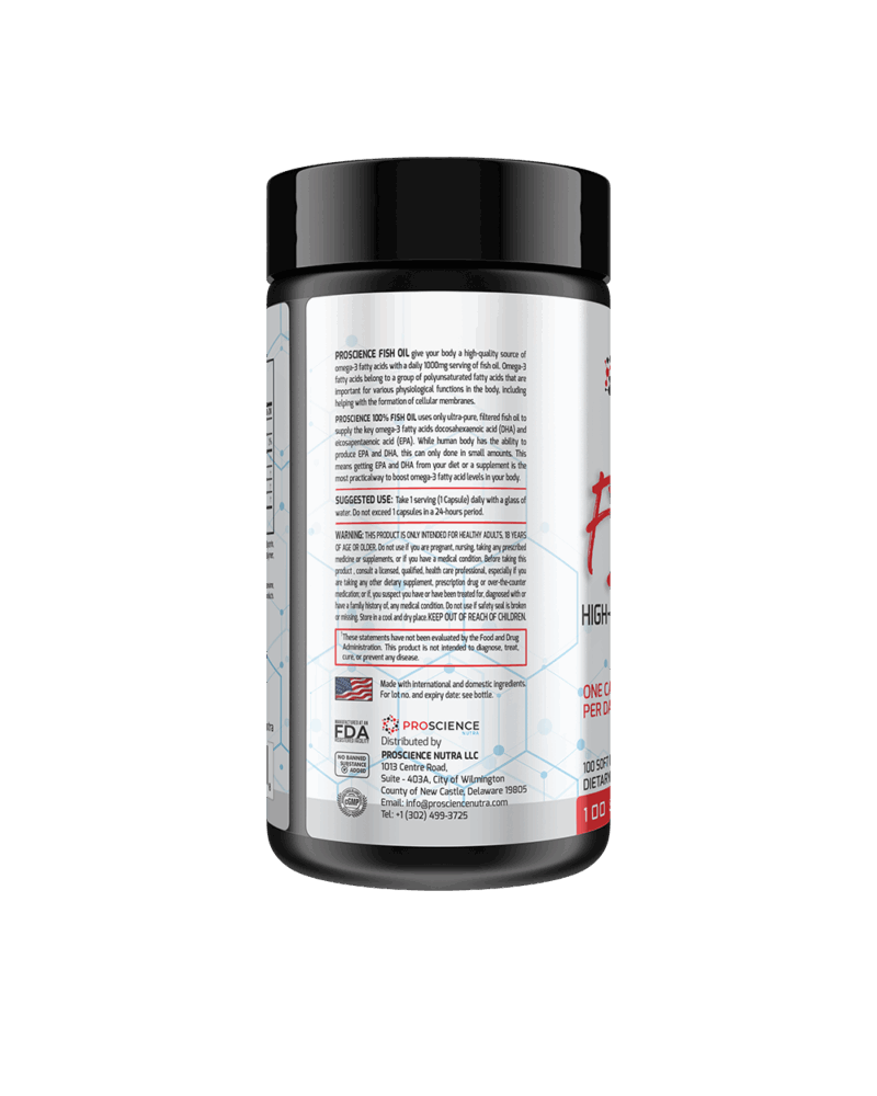 PROSCIENCE FISH OIL give your body a high-quality source of omega-3 fatty acids with a daily 1000mg serving of fish oil. Omega-3 fatty acids belong to a group of polyunsaturated fatty acids that are important for various physiological functions in the body, including helping with the formation of cellular membranes.