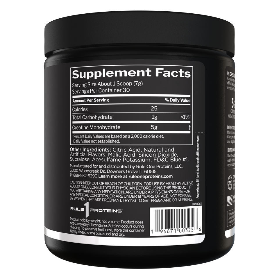 Rule One Proteins R1 Creatine is the no-nonsense, pure performance staple every serious lifter needs. Delivering 100% micronized creatine monohydrate—the most researched, proven, and effective form of creatine backed by over 40 years of science—this unflavored (or flavored options) powder saturates your muscles for explosive strength gains, enhanced power output, faster recovery, and increased lean muscle mass.