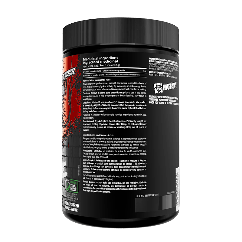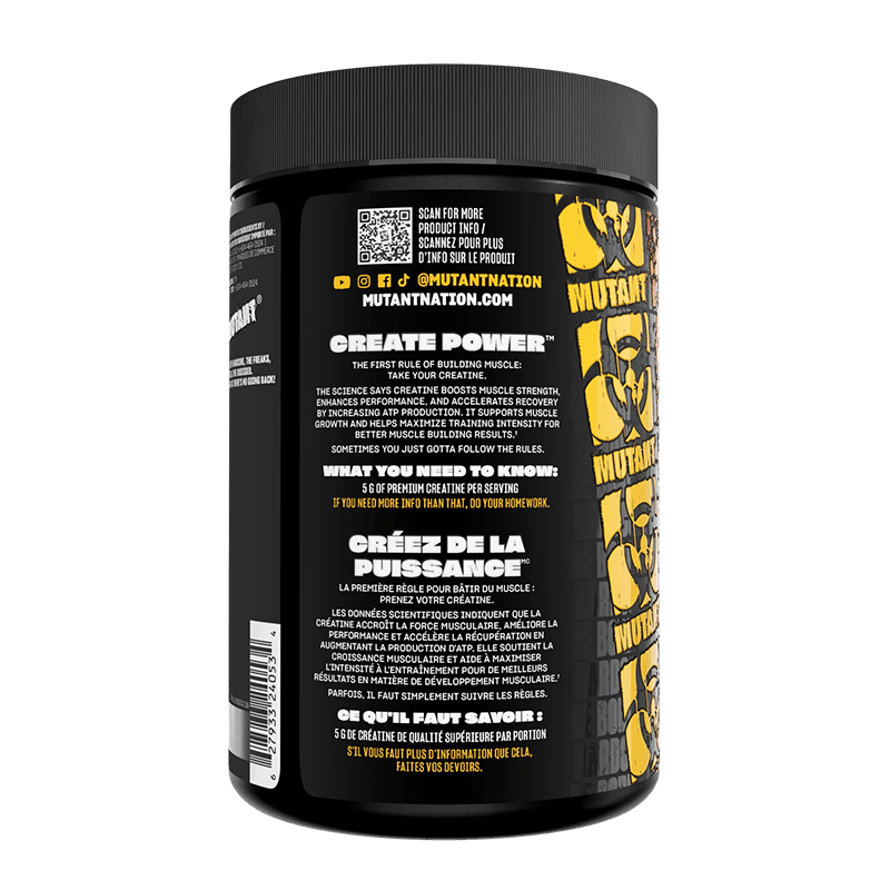 Unlock your full potential with MUTANT® Creatine, the ultimate micronized creatine monohydrate supplement designed for serious athletes and gym warriors. Backed by decades of scientific research, this unflavored, 100% pure creatine powder supercharges your ATP production to deliver bigger lifts, faster recovery, and enhanced muscle growth. Whether you're powering through heavy sets or pushing your endurance limits, MUTANT Creatine helps you train harder, recover smarter, and build the physique you've always wanted. No fillers, no fluff – just premium-grade creatine monohydrate that's easy to mix and stack with your favorite MUTANT products.